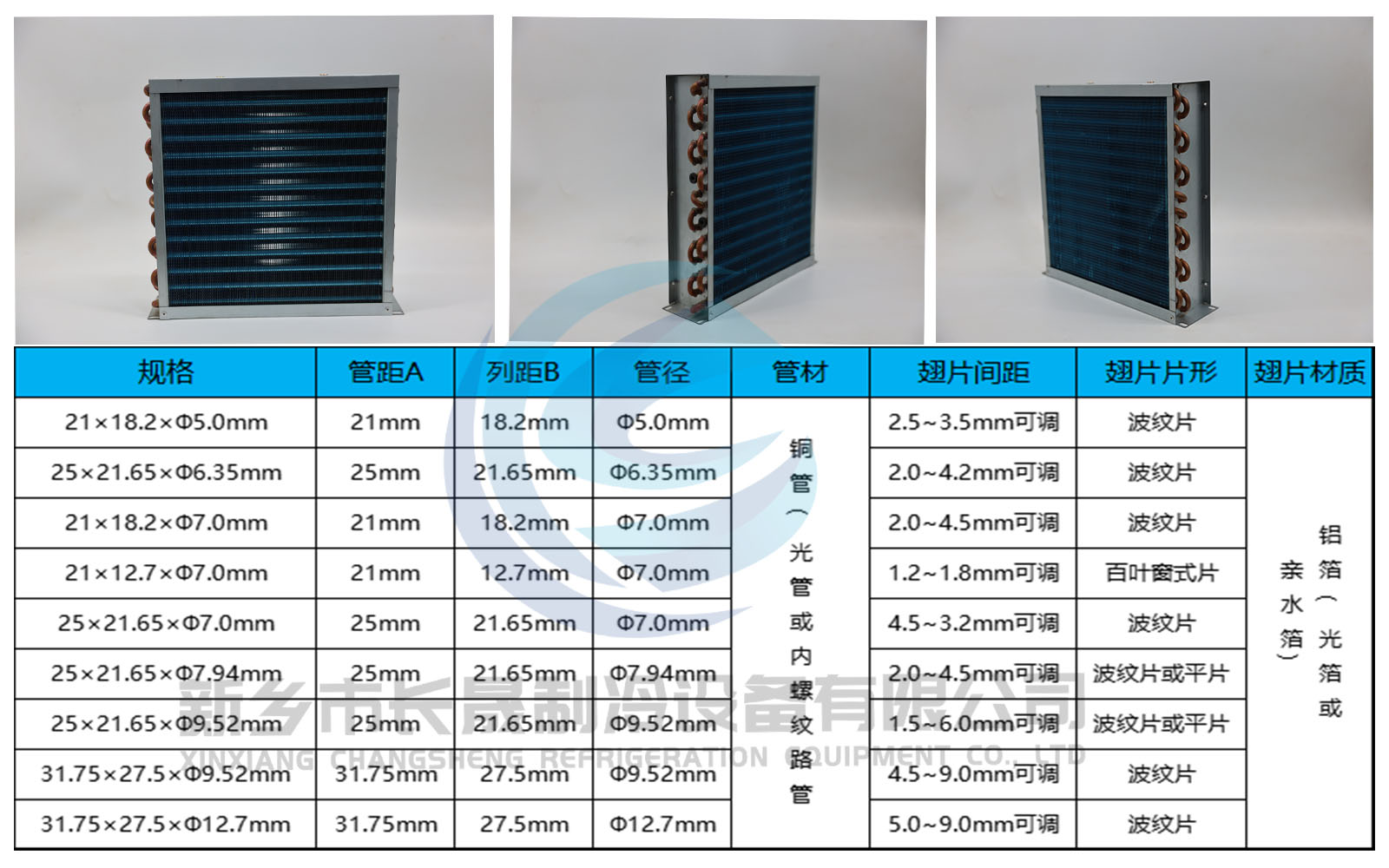 是以生产冰箱、冰柜蒸发器,冷凝器为主的专业企业。公司目前主要产品有铝管管式蒸发器、铜管式蒸发器,蒸发器、冷凝器、冰柜配件以及铜铝管接头及空调器连接管件、过滤器等产品,生产设备好、技术力量雄厚,拥有经验丰富的工程技术人员、完善的产品检测设施,严格的质量保证体系。