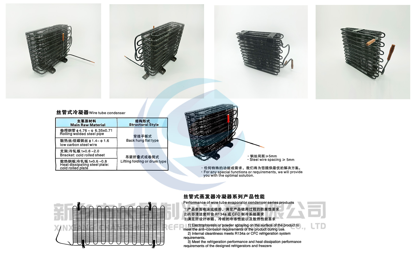 – 采用卷焊钢管(如Φ4.76mm)与低碳钢丝(如Φ1.4mm)焊接而成,兼顾导热性与强度。
