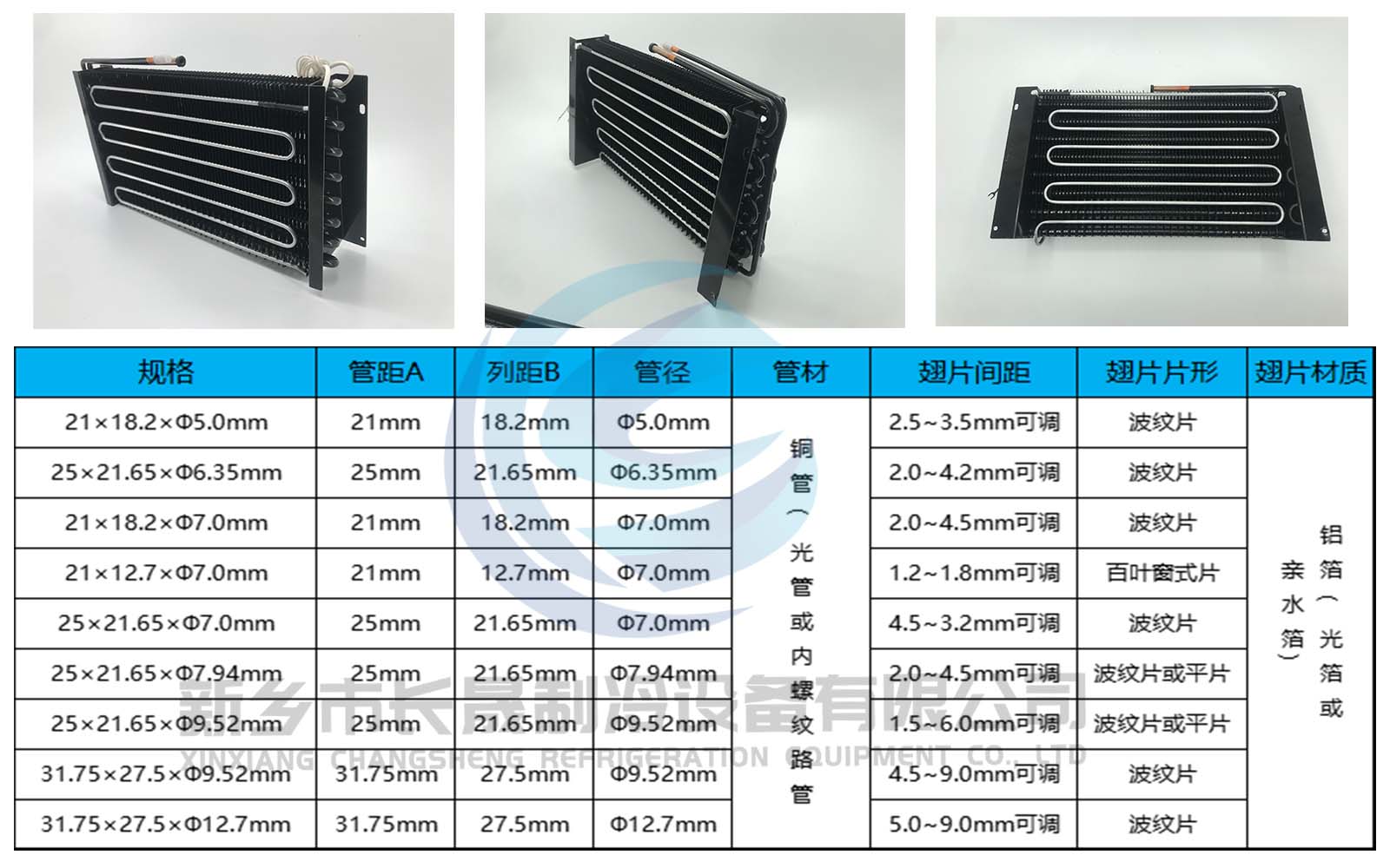 是以生产冰箱、冰柜蒸发器,冷凝器为主的专业企业。公司目前主要产品有铝管管式蒸发器、铜管式蒸发器,蒸发器、冷凝器、冰柜配件以及铜铝管接头及空调器连接管件、过滤器等产品,生产设备好、技术力量雄厚,拥有经验丰富的工程技术人员、完善的产品检测设施,严格的质量保证体系。
