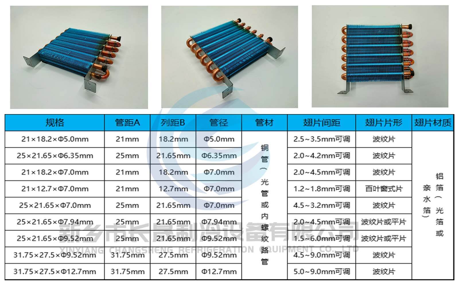 是以生产冰箱、冰柜蒸发器,冷凝器为主的专业企业。公司目前主要产品有铝管管式蒸发器、铜管式蒸发器,蒸发器、冷凝器、冰柜配件以及铜铝管接头及空调器连接管件、过滤器等产品,生产设备好、技术力量雄厚,拥有经验丰富的工程技术人员、完善的产品检测设施,严格的质量保证体系。